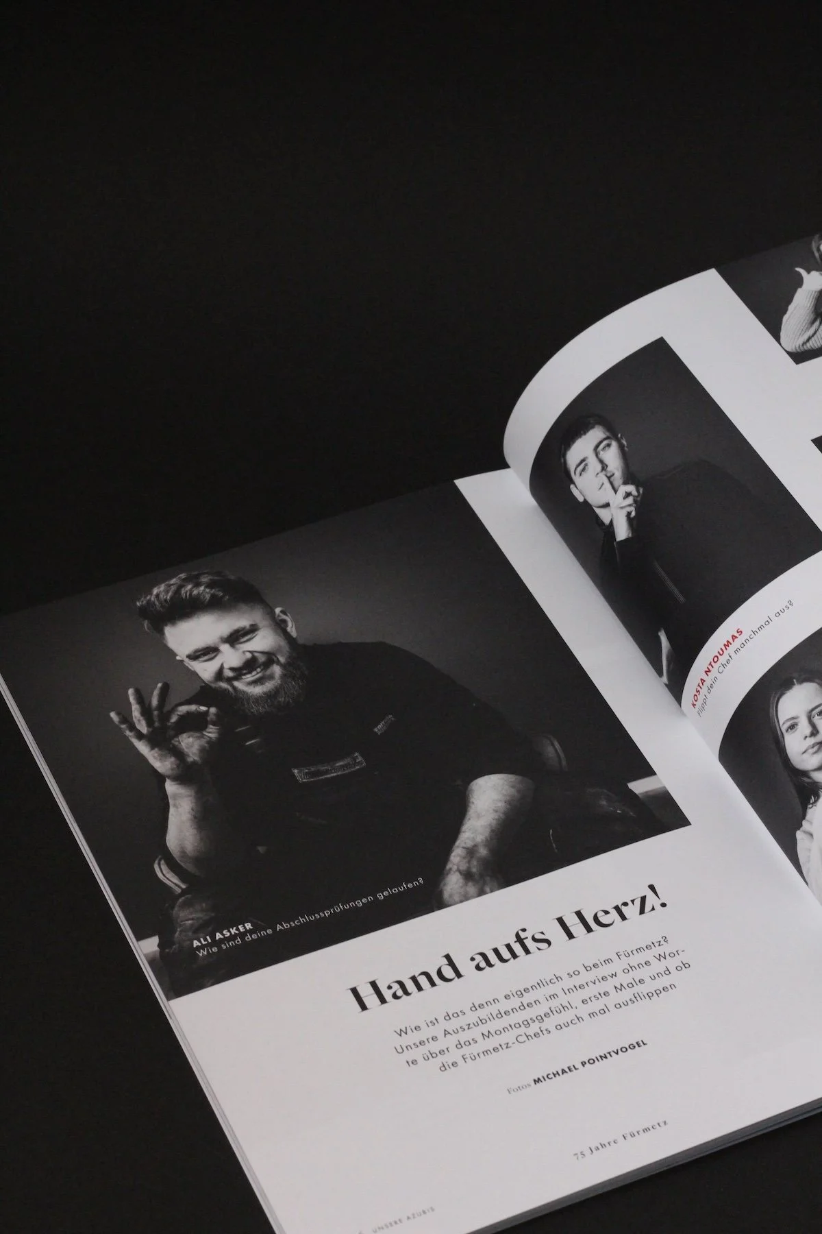 Für das Unternehmensmagazin unseres Kunden haben wir Auszubildende anders zu Wort kommen lassen: ohne Worte. Statt Textantworten zeigen Gesten, was Sprache manchmal nicht schafft. Das Ergebnis ist ehrlich, nahbar – und zeigt genau das, was Employer Branding leisten soll: Kultur, die man spürt, bevor man sich bewirbt.